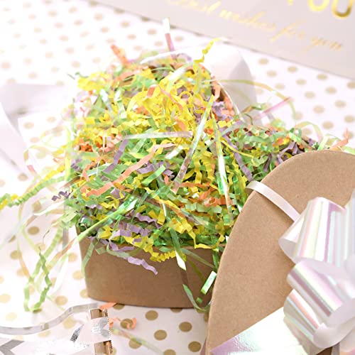 - IRIDESCENT PASTEL PAPER FILLER - Perfect for Create Natural Protection Bedding of Various DIY Arts Craft Projects. The mixed raffia paper packing grass gives gifts a beautiful soft nest. Display your products with a fun and colorful shredded paper stuffer, create a memorable gift-giving experience. Your tasteful choice for gift wrapping makes loved ones feel extra special when they receive your gifts.